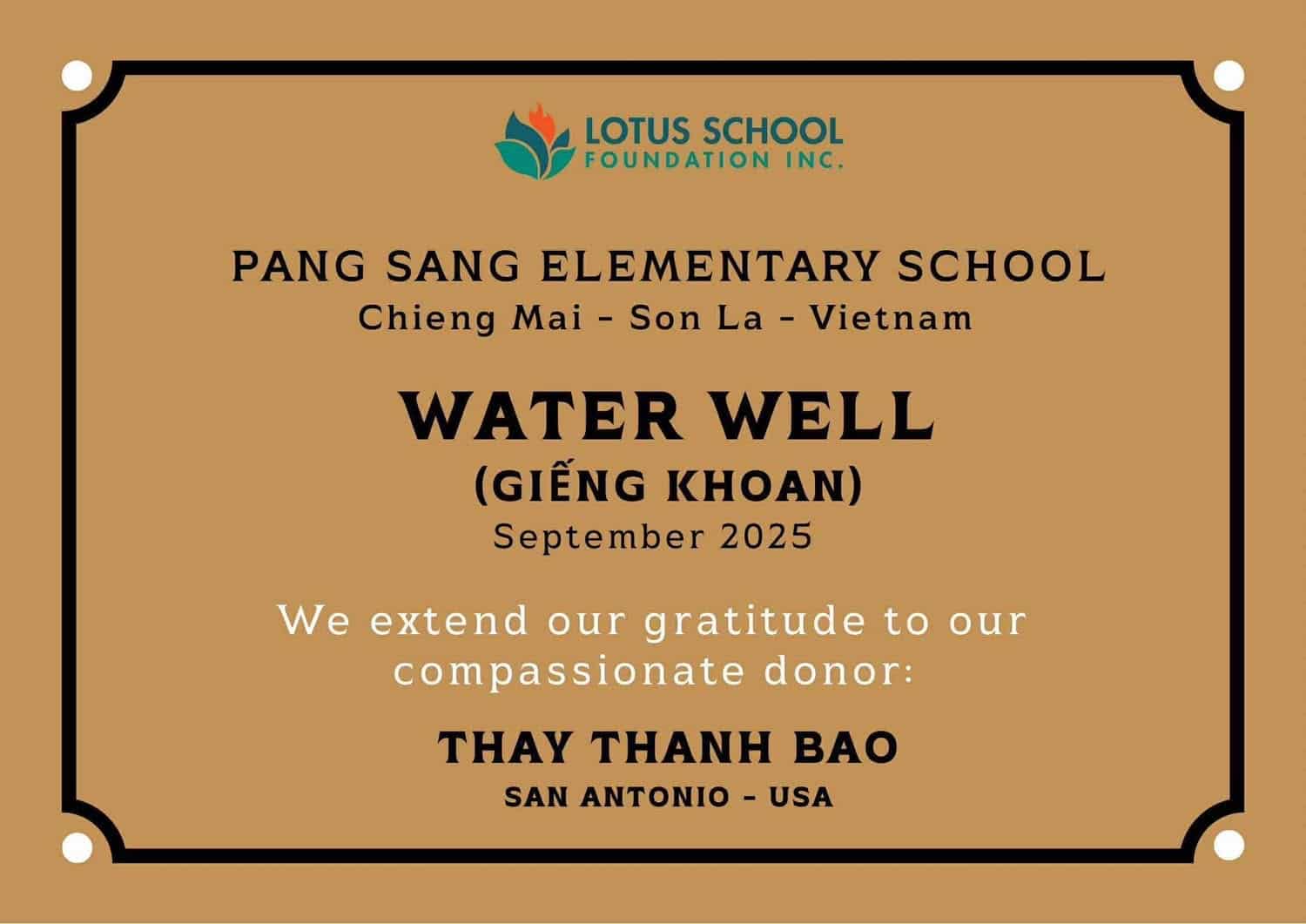 The Lotus School Foundation has celebrated the another handover of a water well at Pang Sang Elementary School in Chieng Mai, Son La, helping improve access to clean water for rural students and communities. We are grateful for the support of Thay Thanh Bao for supporting our work and donating the funds to make this project possible.