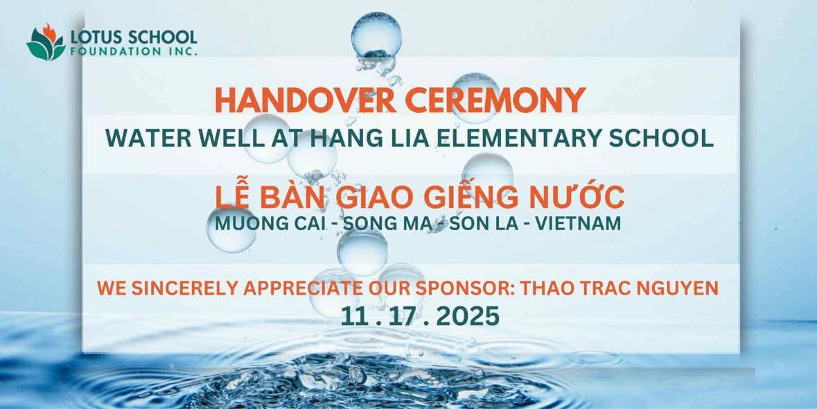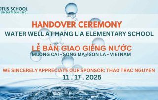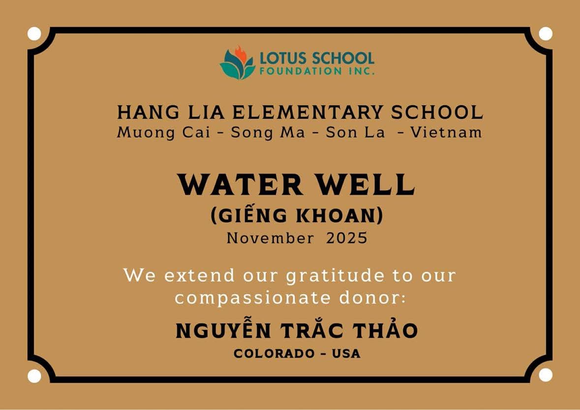 The Lotus School Foundation expresses sincere appreciation to our generous supporter, Mr. Nguyen Trac Thao of Colorado, for his outstanding contribution of $1,300 to fund a new school water well. With his generosity, the project is set for completion by January 2025, bringing clean water and renewed opportunity to the community.
