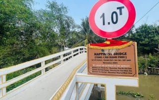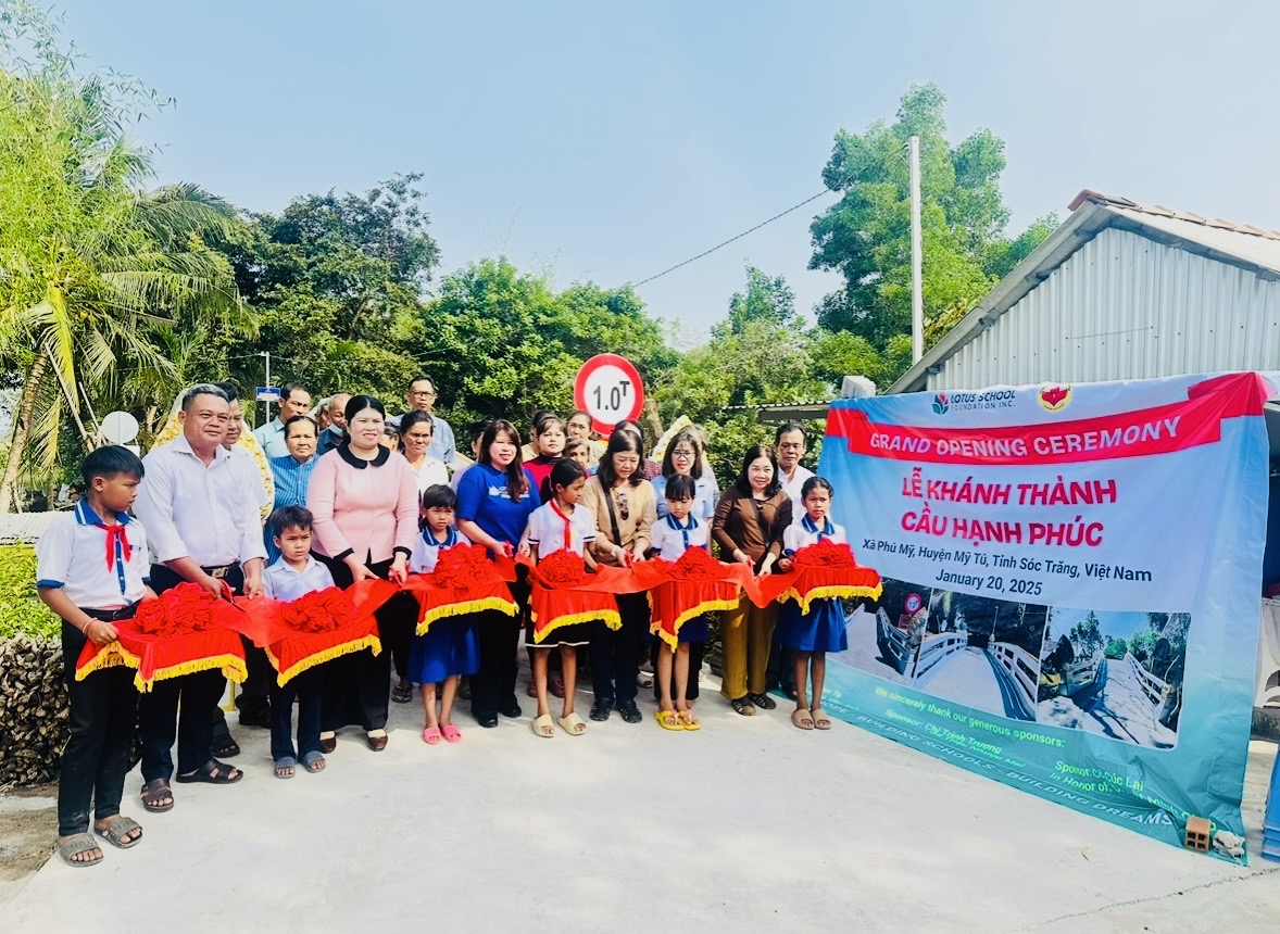 The Lotus School Foundation is elated to share the wonderful news of the completion of the Happiness Bridge (Cầu Hạnh Phúc). This beautiful new bridge spans 115 feet in length and 6.5 feet in width, connecting and improving daily life for more than 2,000 residents in the rural community of Phú Mỹ. We are excited to celebrate this meaningful milestone at the official handover ceremony on January 20, 2026.