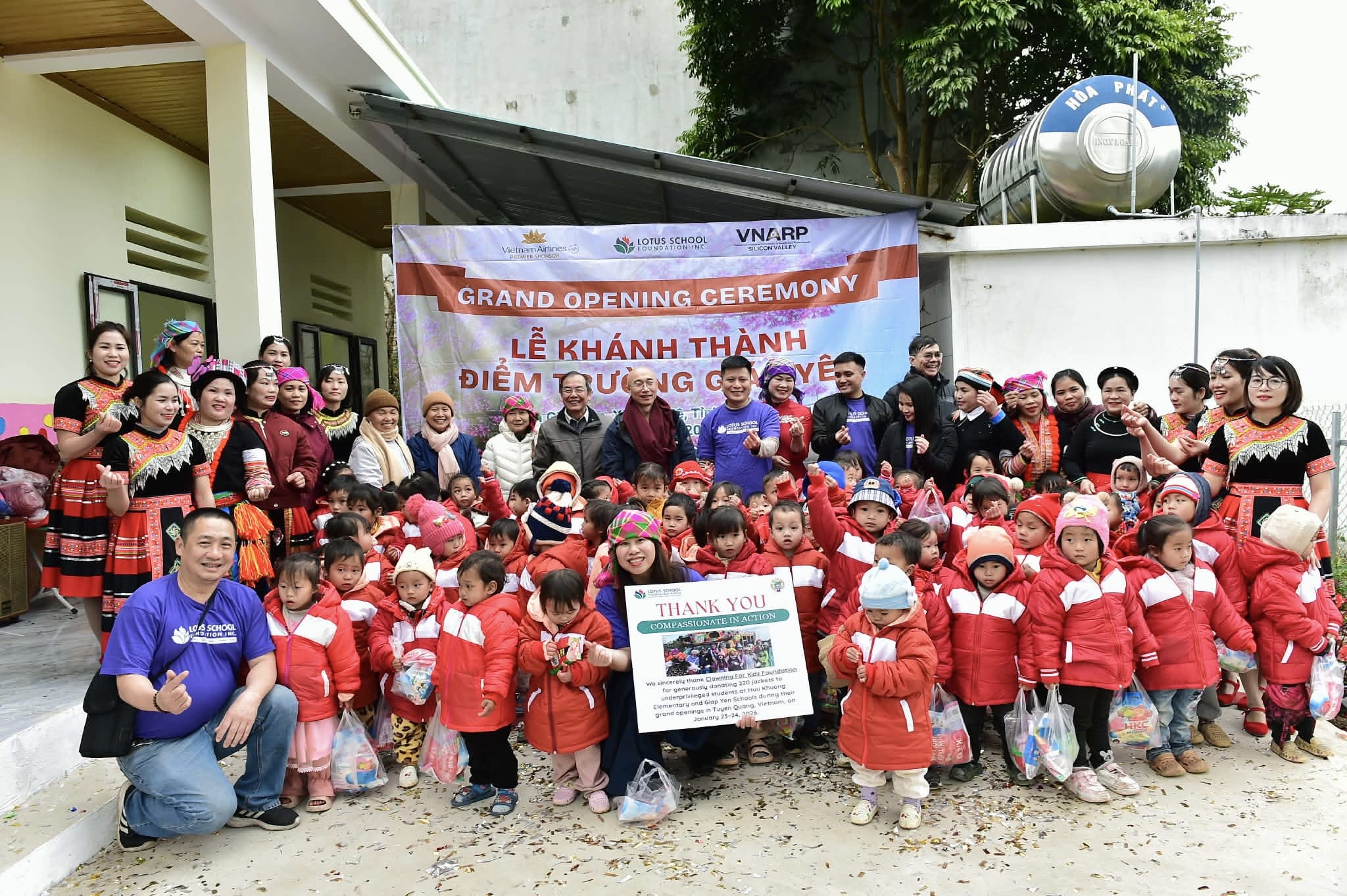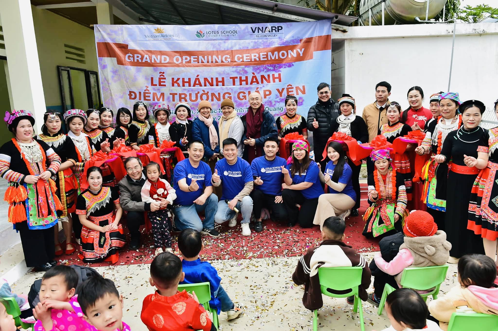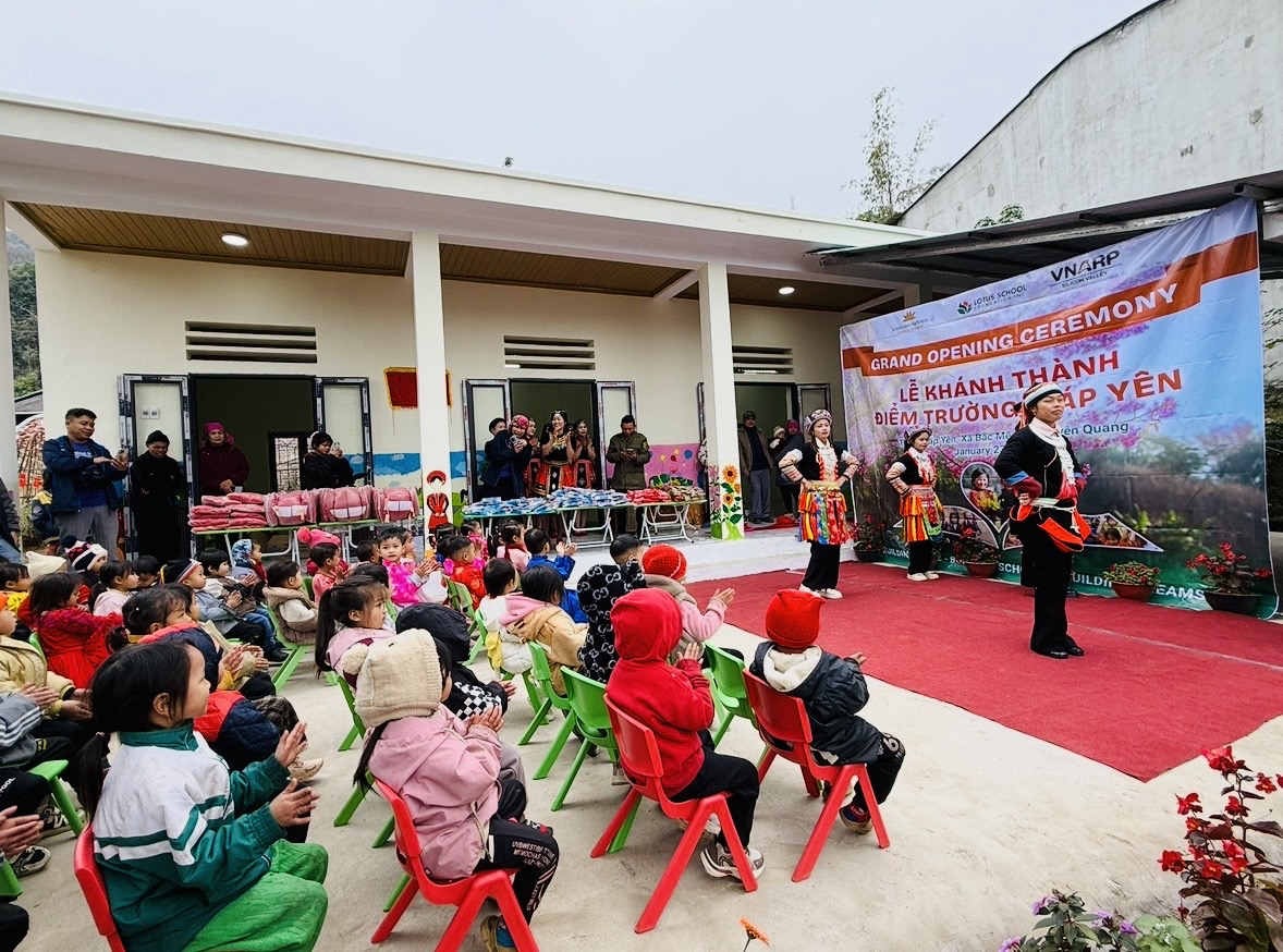 The Lotus School Foundation and our esteemed partner, VNARP Silicon Valley are excited to celebrate the grand-opening of Giap Yen School. After a long but rewarding 10-hour trip from Hanoi to Ha Giang, we were greeted with warm smiles from the children and the sight of a colorful, lively school that truly made our hearts happy.