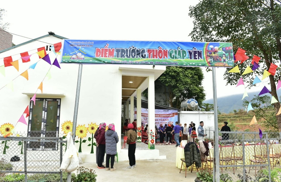 Located deep in the mountainous area of Bac Me, one of the poorest districts in Tuyen Quang (formerly Ha Giang province), the community faces ongoing challenges due to poverty and frequent natural disasters. Over 70% of residents live below the poverty line, and the unpredictable weather continues to make daily life difficult. The current school, located 18 km from the district center and serving 70 students (of ethnic Tay and Hmong), has suffered severe structural damage — cracked walls, a sunken foundation, and a deteriorating 27-year-old building that is no longer safe for children to learn in.